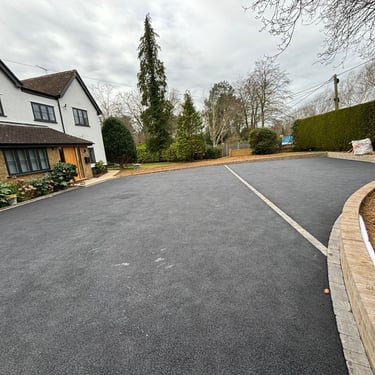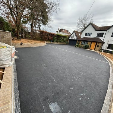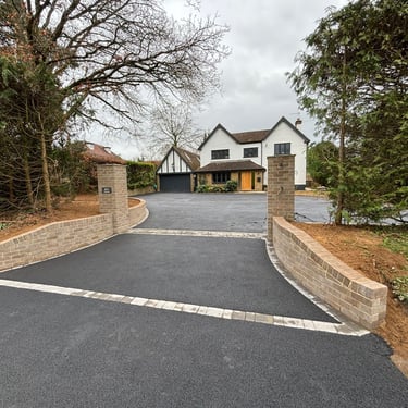 Wow. Our professional and hardworking team truly excelled on this project. They transformed a small, tight driveway into a massive, beautiful, and usable space. The redesign included a complete change of the access point, new brick boundary walls, 250 sqm of tarmac, and grey mix tumbled concrete blocks. We also created a stunning limestone walkway around the house. Collaborating with the gate company ensured everything was perfect for the gate installation. To say we are happy with this result is an understatement.