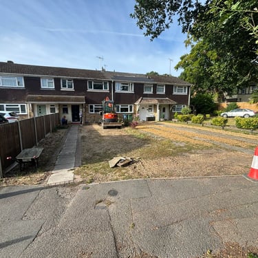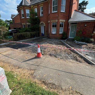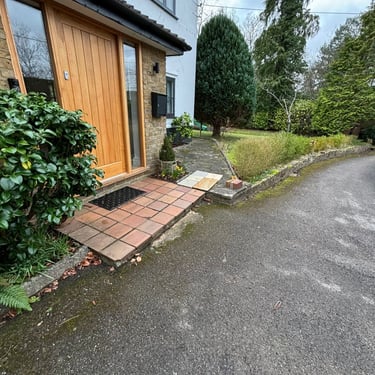 A recent transformation in Farnborough featuring 116sqm of brindle inside and charcoal border block paving.